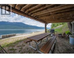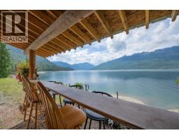 First time on the market—welcome to the legendary O'Brien's on the Lake, a rare and breath-taking opportunity with endless possibilities. This stunningly maintained, income-producing property features three beautifully handcrafted log cabins, each radiating rustic charm and timeless craftsmanship. The main home includes a spacious rental suite with 3 bedrooms and a flex space, while the upper level offers 2 additional bedrooms and an open-concept living that seamlessly combines the living room to kitchen and out to a large covered deck—perfect for soaking in the panoramic views of Arrow Lake and the majestic Saddle Mountain range beyond. A massive 40x40 Quonset shop with 14’ ceilings provides ample workspace and storage for all your projects and toys. The paved driveway leads to your own private boat launch and an incredible 710' of pristine lakefront, making this a true waterfront paradise. Whether you’re looking to live, invest, or develop, this one-of-a-kind lakeside retreat offers unmatched beauty, potential, and privacy. (id:61291)
