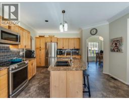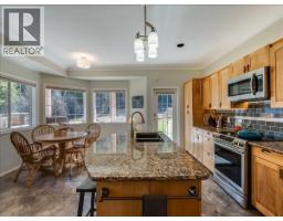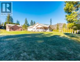 Welcome to the heart of Fruitvale recreation, while being just outside the boundary, offering the perfect blend of rural privacy and everyday convenience. With the elementary school just a short walk away and a bus stop right out front for high school students, the convenience here is truly unmatched. Set on a stunning 4.67 acre property, with approximately 2 acres of usable flat land, this private retreat offers the perfect balance of space, comfort and connection to the community. Custom built in 1998, this impressive 3,300 sqft home showcases quality craftsmanship paired with thoughtful modern updates. The main floor living area features 9 foot ceilings throughout, with a vaulted 12 food ceiling in the living room, creating an open and airy feel. Inside, you'll find 4 spacious bedrooms, a versatile den, and 3 beautifully renovated bathrooms. The kitchen features high-end finishes, under cabinet lighting, and a built-in water filtration system. The living room offers a cozy gas fireplace and fresh paint, while the dining area is surrounded by floor to ceiling windows with peaceful views. Enjoy main floor laundry, a mud room, double garage, and ample parking. Updates include a 30 year roof(2014), PEX plumbing, hot water tank(2021), furnace with AC(2025) and 200 amp service. Outside offers a wrap-around deck, fire pit, sheds, and an incredible shop with RV parking & hoist. This is more than a home, it's a lifestyle property within walking distance to Fruitvale amenities. (id:61291)