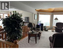 For more info, please click Brochure button. Beautiful 3-level home offering approximately 4500 sq ft of finished living space on a .92-acre landscaped lot with southern exposure & unobstructed 200-degree views. The home features a stucco exterior, asphalt roof & upgraded attic insulation. Heating systems include geothermal with air conditioning, baseboard heat, a wood heater & a wood-burning fireplace. Additional highlights include central vacuum, community spring-fed water, and 200-amp electrical service. The 1650 sq ft main level offers a split-level layout with a spacious living room featuring a custom rock fireplace, formal dining room, large kitchen with breakfast nook & 2 islands, office/den, laundry room, half bath, foyer, and access to a large deck. The 1200 sq ft upper level includes a generous primary bedroom with private deck, walk-in closet, and full ensuite with jetted tub and separate shower, along with two additional bedrooms & a shared full bathroom. The 1650 sq ft lower level features a self-contained unregistered two-bedroom full suite, separate entrance, with full kitchen, living and dining areas, full bathroom, cold room, storage, furnace room, and ground-level entry. An attached two-car garage completes the home. The property also includes a detached 32' x 48' insulated workshop with 2 bays, 100-amp service, wood heater, propane infrared heater & half bath. The yard features a fenced vegetable garden, in-ground irrigation & a fully paved driveway. (id:61291)