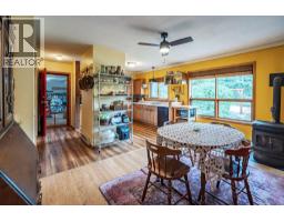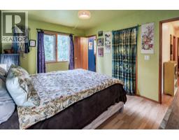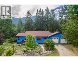 Welcome to this charming rancher on a .63 of an acre, just 3 minutes south of Kaslo, BC. This country home blends comfort with character and features a fully finished walkout basement. The main floor offers two bedrooms and two bathrooms, including a primary suite with a walk-in closet and private half bath. Downstairs has guest suite potential with a large bedroom, full bathroom, laundry, family room, hobby/bonus room, and a wet bar area. Recent upgrades include a new pellet stove and roof shingles. Enjoy easy access off the paved road, a double garage with a workshop, and nearly 500 sq ft of extra storage below. The sunny front yard boasts stunning mountain views, a greenhouse, garden, and a variety of perennials and fruit plants. Relax on the large, covered balcony at the back and take in the peaceful, wooded landscape. This unique property offers privacy, space, and an inviting artist’s touch — the perfect blend of rural charm and comfortable living. (id:61291)