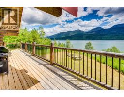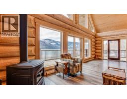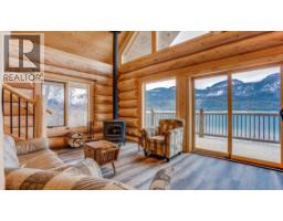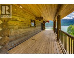 Motivated Sellers! The ultimate retreat on Lower Arrow Lake! This spectacular log home positioned on 10.25-acres with approximately 640 feet of waterfront boasts a stately presence, complimented impeccably by the breathtaking landscape that surrounds it. Built in 2021, the custom-built log home was completed by treating the exterior logs for a low maintenance exterior. With an idyllic location adjacent to Gold Spring, it offers an abundant supply of licensed fresh water plus there are apples, cherries & black raspberries on the property. Inside the home, large custom windows showcasing the views and vaulted ceilings drench the space in natural light and accent the beautiful log work throughout. In the living room, a cozy wood stove adds both warmth and ambiance, and doors lead to the wrap-around porch for a seamless indoor/outdoor lifestyle & the open concept kitchen offers copious rustic cabinetry. Three bedrooms are split between the two levels, with one on the main floor and two upstairs.From the second floor, a doorway leads out to a charming balcony on the front of the home. Lastly, below the main floor a partially finished basement contains a large recreation room and full bathroom, along with generous storage & laundry hookups. This rural location also provides surprisingly good cellular service. With multiple world-class hot springs located within an hour drive, do not miss your chance to own this incredible 4-season property in one of the most spectacular undiscovered areas of BC! (id:61291)