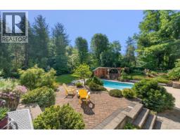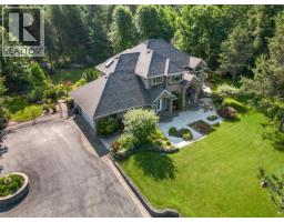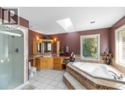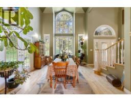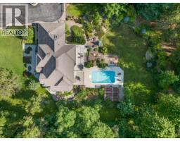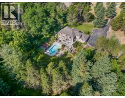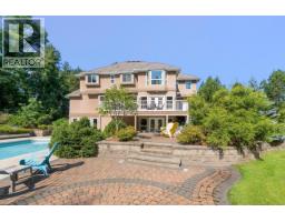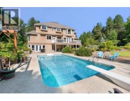 Set back off the road and nestled amongst the trees is this gorgeous custom built two-storey family home on a rare and secluded 5 acre Ootischenia property. Great attention to detail was paid throughout the 5,000 square feet of living area and the home offers an excellent opportunity for a work/play lifestyle. This executive 5 bedroom 4 1/2 bath has plenty of space for the growing family. All 5 bedrooms are located on the upper floor along with 3 full baths including the popular Jack and Jill layout. The master suite is an opulent space with its large room size, gas fireplace and beautiful ensuite. The main floor features stunning vaulted cathedral ceilings, hardwood floors of traditional American cherry and maple, a gourmet kitchen with granite countertops and high-end appliances, a formal dining room and large living room with a gas fireplace. There is also a home-based office with its own separate entry which would allow a homeowner to work from the house on a daily basis. The basement is a retreat to play games or just hang out and watch a movie. Much of the main living space flows naturally towards the back yard and once you see it you will know why. The beautiful inground pool is surrounded by spaces to relax and enjoy including a large deck and several large patio areas with gorgeous custom pavers. The entire space can be used in complete seclusion due to the layout of the home on the lot and the mature trees. There is room to build a shop or potential for a lot to be subdivided off the front (id:61291)