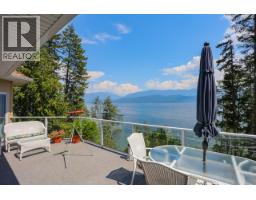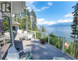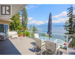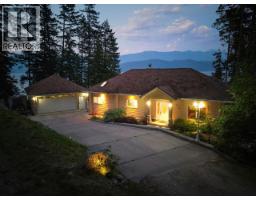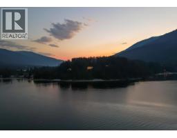 Welcome to this beautifully maintained 1 owner custom home! Breathtaking lake views create an unforgettable backdrop to everyday living. Imagine starting your mornings on the expansive 50-foot deck, watching the iconic B.C. Ferries glide across the water while eagles and blue herons soar overhead. Inside this fully air-conditioned 5 bedroom, 3 bathroom home and you’ll immediately notice the exceptional craftsmanship and thoughtful design. The open-concept main floor features 10-foot ceilings, rich hardwood flooring, & a stunning floor-to-ceiling rock gas fireplace that anchors the bright living space. Large windows perfectly frame the spectacular water views. The kitchen is designed to impress with stainless steel appliances, gorgeous granite countertops, & beautiful maple cabinetry. The spacious primary bedroom provides direct deck access & incredible lake views, along with a walk-in closet & a luxurious ensuite. Downstairs, the walkout level offers the perfect space for entertaining with a large rec room, 2nd floor-to-ceiling rock fireplace, bar area with sink, fridge, & granite countertops, plus comfortable geothermal in-floor heating. Additional highlights include main floor laundry, upgraded mechanical systems, central vac, & a large overbuilt heated 2bay garage with electrical. Located on a quiet no-through road, this property offers peaceful living. Minutes from the golf Course, Ainsworth Hot Springs, & local restaurants. (Vacant & most furniture removed) (id:61291)